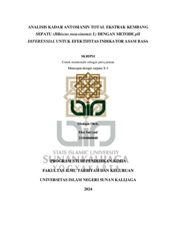 Text (ANALISIS KADAR ANTOSIANIN TOTAL EKSTRAK KEMBANG SEPATU (Hibiscus rosa-sinensis L) DENGAN METODE pH DIFERENSIAL UNTUK EFEKTIFITAS INDIKATOR ASAM BASA)