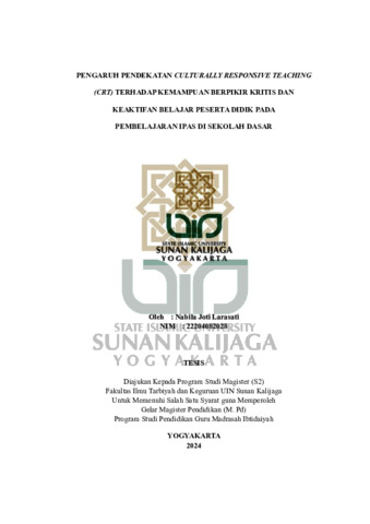 Text (PENGARUH PENDEKATAN CULTURALLY RESPONSIVE TEACHING (CRT) TERHADAP KEMAMPUAN BERPIKIR KRITIS DAN KEAKTIFAN BELAJAR PESERTA DIDIK PADA PEMBELAJARAN IPAS DI SEKOLAH DASAR)