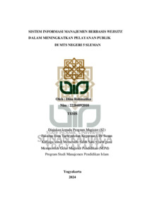 Dina Rohmatika, NIM.: 22204092010 (2024) SISTEM INFORMASI MANAJEMEN BERBASIS WEBSITE DALAM MENINGKATKAN PELAYANAN PUBLIK DI MTS NEGERI 5 SLEMAN. Masters thesis, UIN SUNAN KALIJAGA YOGYAKARTA.