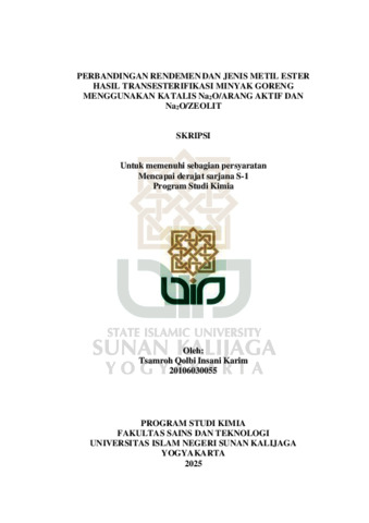 Text (PERBANDINGAN RENDEMEN DAN JENIS METIL ESTER HASIL TRANSESTERIFIKASI MINYAK GORENG MENGGUNAKAN KATALIS Na2O/ARANG AKTIF DAN Na2O/ZEOLIT)