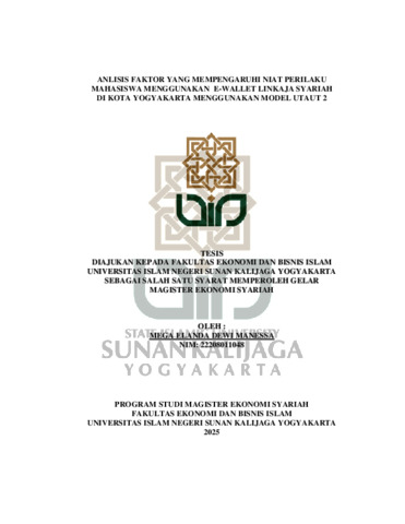 Mega Elanda Dewi Manessa, NIM.: 22208011048 (2025) ANLISIS FAKTOR YANG MEMPENGARUHI NIAT PERILAKU MAHASISWA MENGGUNAKAN E-WALLET LINKAJA SYARIAH DI KOTA YOGYAKARTA MENGGUNAKAN MODEL UTAUT 2. Masters thesis, UIN SUNAN KALIJAGA YOGYAKARTA.