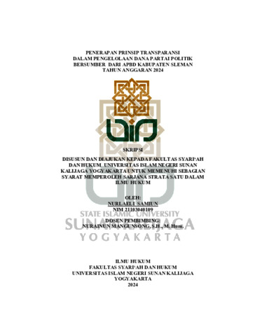 Nurlaeli Samiun, NIM.: 21103040109 (2025) PENERAPAN PRINSIP TRANSPARANSI DALAM PENGELOLAAN DANA PARTAI POLITIK BERSUMBER DARI APBD KABUPATEN SLEMAN TAHUN ANGGARAN 2024. Skripsi thesis, UIN SUNAN KALIJAGA YOGYAKARTA.