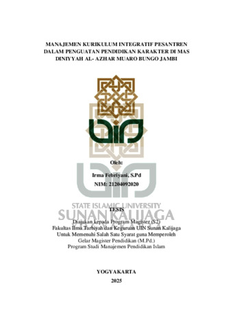 Text (MANAJEMEN KURIKULUM INTEGRATIF PESANTREN DALAM PENGUATAN PENDIDIKAN KARAKTER DI MAS DINIYYAH AL- AZHAR MUARO BUNGO JAMBI)