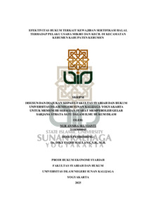 Nur Annisa Selvianti, NIM.: 21103080045 (2025) EFEKTIVITAS HUKUM TERKAIT KEWAJIBAN SERTIFIKASI HALAL TERHADAP PELAKU USAHA MIKRO DAN KECIL DI KECAMATAN KEBUMEN KABUPATEN KEBUMEN. Skripsi thesis, UIN SUNAN KALIJAGA YOGYAKARTA.
