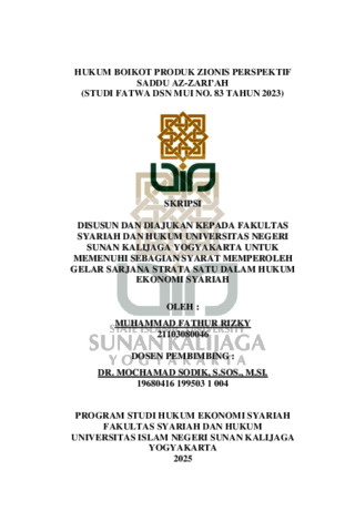 Muhammad Fathur Rizky, NIM.: 21103080046 (2025) HUKUM BOIKOT PRODUK ZIONIS PERSPEKTIF SADDU AZ-ZARI’AH (STUDI FATWA DSN MUI NO. 83 TAHUN 2023). Skripsi thesis, UIN SUNAN KALIJAGA YOGYAKARTA.