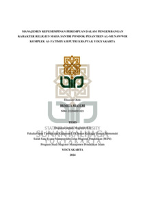Text (MANAJEMEN KEPEMIMPINAN PEREMPUAN DALAM PENGEMBANGAN KARAKTER RELIGIUS MAHA SANTRI PONDOK PESANTREN AL-MUNAWWIR KOMPLEK Al- FATIMIYAH PUTRI KRAPYAK YOGYAKARTA)