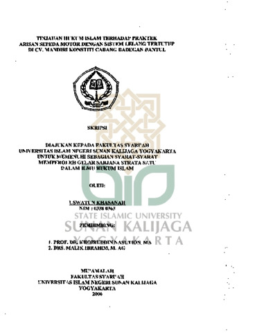 Uswatun Khasanah, NIM.: 03380363 (2006) TINJAUAN HUKUM ISLAM TERHADAP PRAKTEK ARISAN SEPEDA MOTOR DENGAN SISTEM LELANG TERTUTUP DI CV. MANDIRI KONSTITI CABANG BADEGAN BANTUL. Skripsi thesis, UIN SUNAN KALIJAGA YOGYAKARTA.