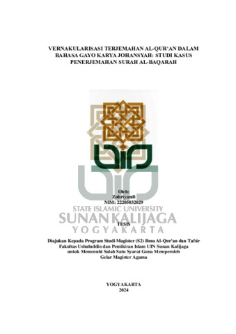 Text (VERNAKULARISASI TERJEMAHAN AL-QUR’AN DALAM BAHASA GAYO KARYA JOHANSYAH: STUDI KASUS PENERJEMAHAN SURAH AL-BAQARAH)
