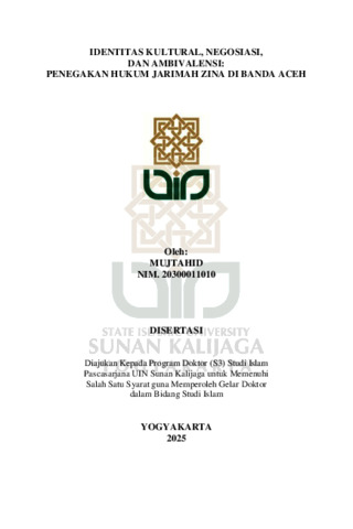 Mujtahid, NIM.: 20300011010 (2025) IDENTITAS KULTURAL, NEGOSIASI, DAN AMBIVALENSI: PENEGAKAN HUKUM JARIMAH ZINA DI BANDA ACEH. Doctoral thesis, UIN SUNAN KALIJAGA YOGYAKARTA.