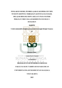 Adnin Syifa Ummah, NIM.: 18106080027 (2025) PENGARUH MODEL PEMBELAJARAN KOOPERATIF TIPE WINDOW SHOPPING TERHADAP AKTIVITAS DAN HASIL BELAJAR BIOLOGI SISWA KELAS X PADA MATERI PERANAN VIRUS DALAM KEHIDUPAN DI SMAN 1 BANJARAN. Skripsi thesis, UIN SUNAN KALIJAGA YOGYAKARTA.