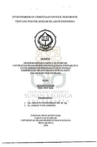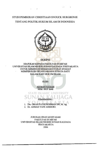 Ah Maftuchan, NIM.: 99373648 (2006) STUDI PEMIKIRAN CHRISTIAAN SNOUCK HURGRONJE TENTANG POLITIK-HUKUM ISLAM DI INDONESIA. Skripsi thesis, UIN SUNAN KALIJAGA YOGYAKARTA.
