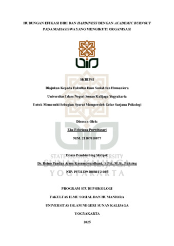 Eka Febriana Purwitasari, NIM.: 21107010077 (2025) HUBUNGAN EFIKASI DIRI DAN HARDINESS DENGAN ACADEMIC BURNOUT PADA MAHASISWA YANG MENGIKUTI ORGANISASI. Skripsi thesis, UIN SUNAN KALIJAGA YOGYAKARTA.