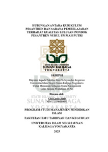 Cici Laras Jabil, NIM.: 21104090053 (2025) HUBUNGAN ANTARA KURIKULUM PESANTREN DAN SARANA PEMBELAJARAN TERHADAP KUALITAS LULUSAN PONDOK PESANTREN NURUL UMMAH PUTRI. Skripsi thesis, UIN SUNAN KALIJAGA YOGYAKARTA.