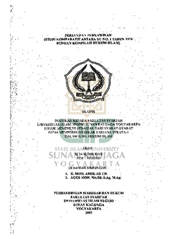 Ishanudin Rais, NIM.: 99363556 (2005) PERJANJIAN PERKAWINAN (STUDI KOMPARATIF ANTARA UU NO. 1 TAHUN 1974 DENGAN KOMPILASI HUKUM ISLAM). Skripsi thesis, UIN SUNAN KALIJAGA YOGYAKARTA.