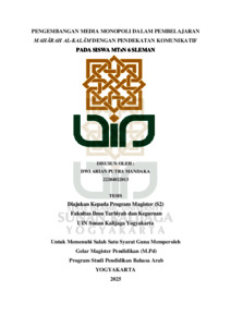 Dwi Arian Putra Mandaka, NIM.: 22204022013 (2025) PENGEMBANGAN MEDIA MONOPOLI DALAM PEMBELAJARAN MAHARAH AL-KALAM DENGAN PENDEKATAN KOMUNIKATIF PADA SISWA MTsN 6 SLEMAN. Masters thesis, UIN SUNAN KALIJAGA YOGYAKARTA.