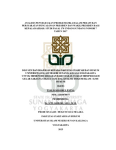 Tsalis Khoirul Fatna, NIM.: 21103070077 (2025) ANALISIS PENYELESAIAN PROBLEMATIKA DALAM PERATURAN PERSYARATAN PENCALONAN PRESIDEN DAN WAKIL PRESIDEN BAGI KEPALA DAERAH: STUDI PASAL 170 UNDANG UNDANG NOMOR 7 TAHUN 2017. Skripsi thesis, UIN SUNAN KALIJAGA YOGYAKARTA.