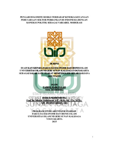 Fadhil Fadlullah, NIM.: 20108040002 (2025) PENGARUH KOMITE RISIKO TERHADAP KINERJA KEUANGAN PERUSAHAAN SEKTOR PERBANKAN DI INDONESIA DENGAN KONEKSI POLITIK SEBAGAI VARIABEL MODERASI. Skripsi thesis, UIN SUNAN KALIJAGA YOGYAKARTA.
