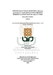 Arista Yunia Dyah Puspita, NIM.: 20106040037 (2024) INDUKSI KALUS DAUN KEMUNING (Murraya paniculata (L.) Jack) DENGAN PENAMBAHAN HORMON 2,4-D DAN BAP SECARA IN VITRO HALAMAN JUDUL. Skripsi thesis, UIN SUNAN KALIJAGA YOGYAKARTA.