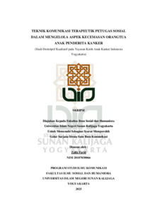 Zalfa Farid, NIM.: 20107030066 (2025) TEKNIK KOMUNIKASI TERAPEUTIK PETUGAS SOSIAL DALAM MENGELOLA ASPEK KECEMASAN ORANGTUA ANAK PENDERITA KANKER (Studi Deskriptif Kualitatif pada Yayasan Kasih Anak Kanker Indonesia Yogyakarta). Skripsi thesis, UIN SUNAN KALIJAGA YOGYAKARTA.