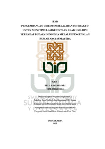 Bela Mayang Sari, NIM.: 23204031004 (2025) PENGEMBANGAN VIDEO PEMBELAJARAN INTERAKTIF UNTUK MENSTIMULASI KECINTAAN ANAK USIA DINI TERHADAP BUDAYA INDONESIA MELALUI PENGENALAN RUMAH ADAT SUMATERA. Masters thesis, UIN SUNAN KALIJAGA YOGYAKARTA.