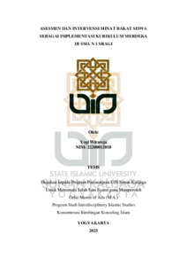 Yogi Wirareja, NIM.: 22200012018 (2025) ASESMEN DAN INTERVENSI MINAT BAKAT SISWA SEBAGAI IMPLEMENTASI KURIKULUM MERDEKA DI SMA N 1 SRAGI. Masters thesis, UIN SUNAN KALIJAGA YOGYAKARTA.