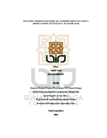 Yusril Yasin, NIM.: 22200012091 (2025) DINAMIKA PSIKOLOGIS PERILAKU INDISIPLINER PADA SISWA BROKEN HOME STUDI KASUS DI MADRASAH. Masters thesis, UIN SUNAN KALIJAGA YOGYAKARTA.