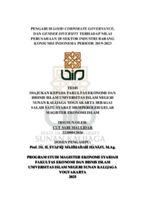 Cut Sari Maulidar, NIM.: 22208012026 (2025) PENGARUH GOOD CORPORATE GOVERNANCE, DAN GENDER DIVERSITY TERHADAP NILAI PERUSAHAAN DI SEKTOR INDUSTRI BARANG KONSUMSI INDONESIA PERIODE 2019-2023. Masters thesis, UIN SUNAN KALIJAGA YOGYAKARTA.