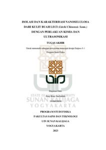 Fany Rizki Nurfadilah, NIM.: 19106020030 (2025) ISOLASI DAN KARAKTERISASI NANOSELULOSA DARI KULIT BUAH LECI (Litchi Chinensis Sonn.) DENGAN PERLAKUAN KIMIA DAN ULTRASONIKASI. Skripsi thesis, UIN SUNAN KALIJAGA YOGYAKARTA.