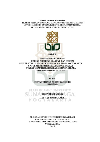 Text (MOTIF TINDAKAN SOSIAL TRADISI PERKAWINAN ADAT JAWA MANTEN MUBENG MESJID (STUDI KASUS DI DUSUN JREBENG, DESA JAMBU KIDUL, KECAMATAN CEPER, KABUPATEN KLATEN))