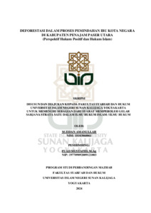 M Zidan Amanullah, NIM.: 18103060061 (2025) DEFORESTASI DALAM PROSES PEMINDAHAN IBU KOTA NEGARA DI KABUPATEN PENAJAM PASER UTARA (Perspektif Hukum Positif dan Hukum Islam). Skripsi thesis, UIN SUNAN KALIJAGA YOGYAKARTA.
