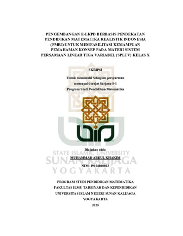 Muhammad Abdul Khakim, NIM.: 19104040013 (2025) PENGEMBANGAN E-LKPD BERBASIS PENDEKATAN PENDIDIKAN MATEMATIKA REALISTIK INDONESIA (PMRI) UNTUK MEMFASILITASI KEMAMPUAN PEMAHAMAN KONSEP PADA MATERI SISTEM PERSAMAAN LINEAR TIGA VARIABEL (SPLTV) KELAS X. Skripsi thesis, UIN SUNAN KALIJAGA YOGYAKARTA.