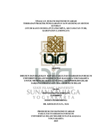 Indy Daniatul Firdaus, NIM.: 21103080033 (2025) TINJAUAN HUKUM EKONOMI SYARIAH TERHADAP PRAKTIK PENGGARAPAN SAWAH DENGAN SISTEM SETORAN (STUDI KASUS DI DESA PUTATKUMPUL, KECAMATAN TURI, KABUPATEN LAMONGAN). Skripsi thesis, UIN SUNAN KALIJAGAYOGYAKARTA.