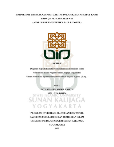 Fathan Alim Abdul Basith, NIM.: 21105030136 (2025) SIMBOLISME DAN MAKNA SPIRITUALITAS DALAM KISAH ASHABUL KAHFI PADA QS. AL-KAHF AYAT 9-26 (ANALISIS HERMENEUTIKA PAUL RICOUER). Skripsi thesis, UIN SUNAN KALIJAGA YOGYAKARTA.