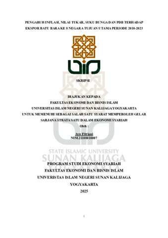 Ayu Fitriani, NIM.: 21108010007 (2025) PENGARUH INFLASI, NILAI TUKAR, SUKU BUNGA DAN PDB TERHADAP EKSPOR BATU BARA KE 8 NEGARA TUJUAN UTAMA PERIODE 2010-2023. Skripsi thesis, UIN SUNAN KALIJAGA YOGYAKARTA.