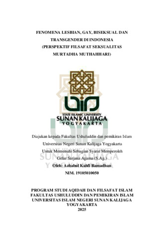Azhabul Kahfi Ramadhan, NIM.: 19105010050 (2025) FENOMENA LESBIAN, GAY, BISEKSUAL DAN TRANSGENDER DI INDONESIA (PERSPEKTIF FILSAFAT SEKSUALITAS MURTADHA MUTHAHHARI). Skripsi thesis, UIN SUNAN KALIJAGA YOGYAKARTA.