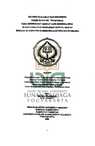 Text (KEANEKARAGAMAN DAN DISTRIBUSI TUMBUHAN PAKU TERESTRIAL PADA KETINGGIAN TEMPAT YANG BERBEDA-BEDA DI JALUR SELATAN PENDAKIAN GUNUNG MERAPI SEBAGAI ALTERNATIF SUMBER BELAJAR BIOLOGI DI SMA/MA)