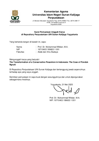 Text (The Transformation of a Conservative Pesantren in Indonesia The Case of Pondok Ngruki)