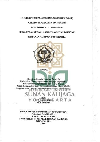 Text (IMPLEMENTASI TEAMS-GAMES-TOURNAMENT (TGT) MELALUI PENDEKATAN KOO PERA TIF PADA POKOK BAHASAN FUNGSI SISWA KELAS XI MAN LABORAT FAKULTAS TARBIYAH UIN SUN AN KALIJAGA YOGYAKARTA)