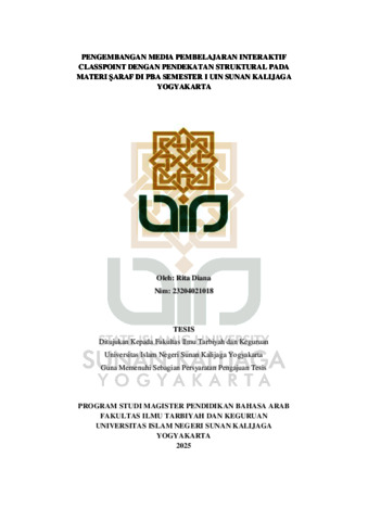Text (PENGEMBANGAN MEDIA PEMBELAJARAN INTERAKTIF CLASSPOINT DENGAN PENDEKATAN STRUKTURAL PADA MATERI ṢARAF DI PBA SEMESTER I UIN SUNAN KALIJAGA YOGYAKARTA)