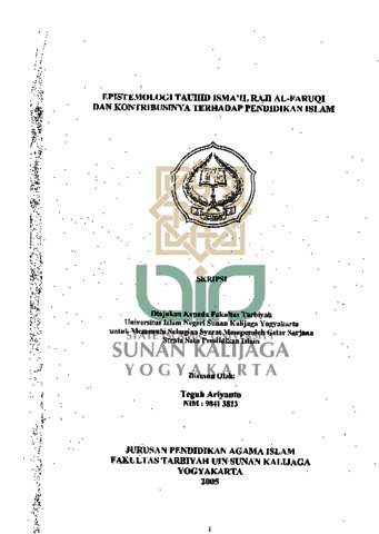 Text (EPISTEMOLOGI TAUHID ISMA'IL RA.JI AL-FARUQI DAN KONTRIBUSINYA TERHADAP PENDIDIKAN ISLAM)