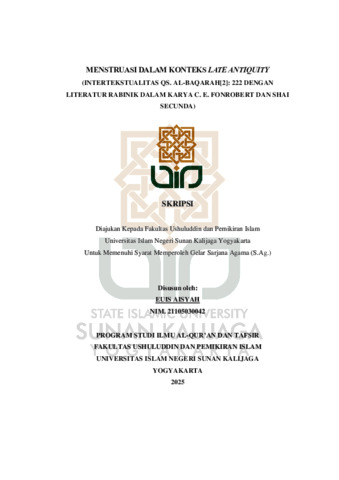 Text (MENSTRUASI DALAM KONTEKS LATE ANTIQUITY (INTERTEKSTUALITAS QS. AL-BAQARAH[2]: 222 DENGAN LITERATUR RABINIK DALAM KARYA C. E. FONROBERT DAN SHAI SECUNDA))