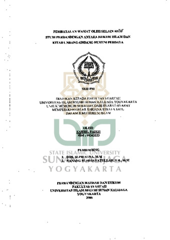 Zahril Faikh, NIM.: 99363533 (2006) PEMBATALAN WASIAT OLEH SELAIN MUSI STUDI PERBANDINGAN ANTARA HUKUM ISLAM DAN KITAB UNDANG-UNDANG HUKUM PERDATA. Skripsi thesis, UIN SUNAN KALIJAGA YOGYAKARTA.
