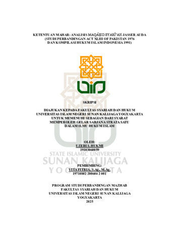 Text (KETENTUAN MAHAR: ANALISIS MAQA@S}ID SYARI@’AH JASSER AUDA (STUDI PERBANDINGAN ACT XLIII OF PAKISTAN 1976 DAN KOMPILASI HUKUM ISLAM INDONESIA 1991))