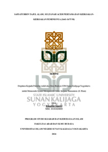 Rimadini Saputri, NIM.: 19101020059 (2024) SAFIATUDDIN TAJUL ALAM; SULTANAH ACEH PERTAMA DAN KEBIJAKAN-KEBIJAKAN FEMINISNYA (1641-1675 M). Skripsi thesis, UIN SUNAN KALIJAGA YOGYAKARTA.