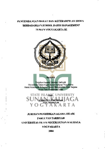 Aimmatul Chosyi'ah, NIM.: 01410667-00 (2004) PENGEMBANGAN BAKAT DAN KETERAMPILAN SISWA BERDASARKAN SCHOOL BASED MANAGEMENT DI MAN YOGYAKARTA III. Skripsi thesis, UIN SUNAN KALIJAGA YOGYAKARTA.