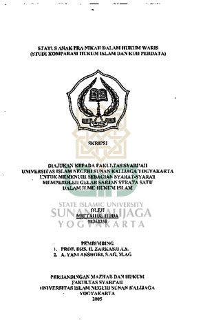 Miftahul Huda, NIM.: 98363358 (2006) STATUS ANAK PRA NIKAH DA LAM HUKUM WARIS (STUDI KOMPARASI HUKUM ISLAM DAN KUH PERDATA). Skripsi thesis, UIN SUNAN KALIJAGA YOGYAKARTA.