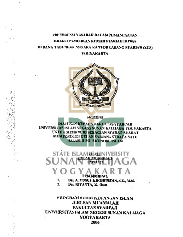 Text (PREFERENSI NASABAH DALAM PEMANFAATAN KREDIT PEMILIKAN RUMAH SYARIAH (KPRS) DI BANK TABUNGAN NEGARA KANTOR CABANG SYARIAH (KCS) YOGYAKARTA)