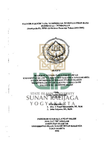 Text (FAKTOR-FAKTOR YANG MEMPENGARUHI PENYALURAN DANA PEMBIAYAAN PERBANKAN (Studi pada PT. BPRS AI-Mabrur Ponorogo Tahun 2003-2005))