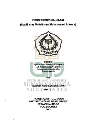 Mohammad Ezani Shafie, NIM.: 94511537 (2001) HERMENEUTIKA ISLAM (Studi atas Pemikiran Mohammed Arkoun). Skripsi thesis, UIN SUNAN KALIJAGA YOGYAKARTA.