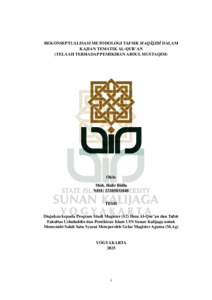 | Uncontrolled Keywords: | rekonseptualisasi; kajian tematik Al-Qur’an; Tafsir maqaṣidi |